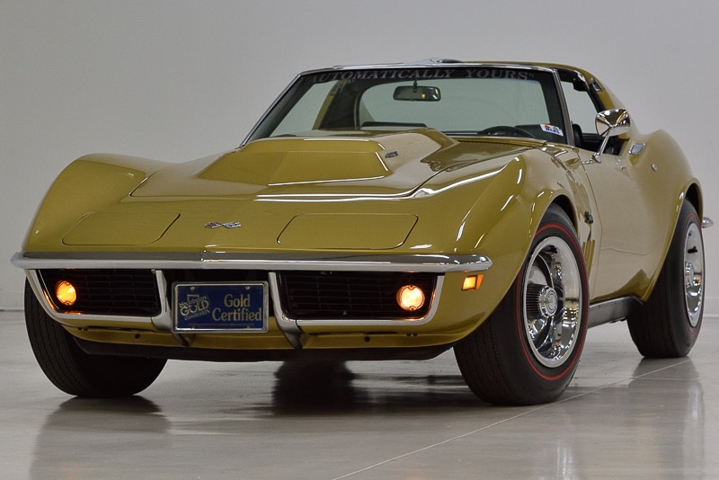1067D..1969 Corvette Coupe known as "automatically yours", L-88 (560 hp), turbo-hydramatic, numbers matching purpose-built car and one of a total production of 216 L-88's built in years 1967 through 1969 and one of only 17 automatic L-88's ever produced, also has factory original body/trim tag and working odometer showing 21,134. Riverside Gold paint with Black interior. Body-off restored by internationally famous Naber's Brothers of Houston, Texas in show condition. These type restorations normally cost between $150,000.00 to $200,000.00. Bloomington Gold certified with a score of 99.5% and multiple NCRS Flight awards including two regional awards. Also invited and displayed in the Bloomington Gold Special Collection, MCACN L88 Corvette Invitational, and invited for special exhibit at The Gilmore Car Museum aka "North America's Largest Auto Museum" in Hickory Corners, Michigan, entitled: Greatest Generations - Corvette - Evolution of America's Sports Car which opened April 1st, 2021 and ran through March 2023. Radio delete car optioned with aluminum heads, power brakes, headrests, shoulder harness, transistorized ignition, 3.70 posi, F-41 special heavy duty suspension, J-56 heavy duty brakes, SS brakes, A.I.R., tinted glass, rally wheels, vintage F-70x15" Firestone red stripe tires. Most all factory correct type components including the spare, jack, jack tools, T-Top bags, F-41 shocks, seat belts, washer system, smog system, shifter, air cleaner, alternator, distributor, #4064 carb, hoses, hose clamps, dated window glass, valve covers, starter, radiator, gas door assembly, owners manual, sales brochure, and T-3 headlights. This car was owned by businessman and philanthropist John Moores of the San Diego Padres and was donated, along with 26 exceptional automobiles which included thirteen 1953 Corvettes as well as CERV II and two Ferrari Nart Spyders, to the Scripps Research Institute to benefit the Institute for Childhood and Neglected Diseases and was sold by the Scripps Institute several years ago at the Christie's auction at La Jolla, California (Torre Pines). Other past owners include Ron Laubenheimer, John Leonard, Ken Heckart, Paul Jones, Dana Mecum, Mike Vietro, Glen Konkle, Chuck Ungurean, Terry Michaelis/ProTeam Personal Reserve Collection (last 20 years). Documented with NCRS validated GM internal paperwork/documents, Bloomington Gold, NCRS judging sheets, NCRS Confirmation of Judging Awards, historic photos, and owner history with emails and period race photos from Bard Chevrolet's service manager who drag raced this car when new. "Automatically Yours" was sold and used as a drag car (IHRA record holder on the east coast) by its first owner, Bard Chevrolet. Production date of December 11th, 1968 and delivered new by Bard Chevrolet in Newburgh, NY (dealer code 47 in zone 2) per the official NCRS/GM shipping data records (SDR). This very rare Corvette Stingray L-88 is one of the most sought after models of American high performance sports cars ever produced. Click here to read email and view his old race photos. Fun Facts: 1967 to 1969 total Corvette production = 90,268 units of which only 216 L88’s were produced (0.24 percent) – Rare indeed and this is one of those precious few!! Looks, runs, and drives excellent. CC:+1 email: terry@proteamcorvette.com Consigned to Mecum Kissimmee Collector Car Auction January 15th - 17th, 2026