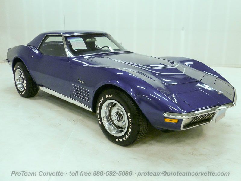 The following Corvettes are all from the years 1968 to 1972. ProTeam Classic Corvette Collection and Sales has the world famous collection of classic Corvettes. Complete description with photos and prices are located here on line. Money Back Guarantee. Delivery, finance, and insurance are available here on line. Review our condition codes before making any purchase. Please read our descriptions carefully as we attempt to answer many very important questions and give you, the purchaser, peace of mind. Have a specific question or request - proteam@proteamcorvette.com