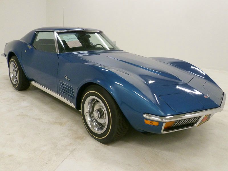 1016T..1972 Corvette Benchmark 4-Star Bowtie Time-Capsule T-Top, 350 turbo hydra-matic transmission, numbers matching original motor, transmission and rear end, also has factory original body/trim tag, 8,925 actual miles. Bryar Blue paint with Black interior. Original, unmolested, unrestored and in excellent low-mile condition. Bloomington Gold Benchmark award (2018), Survivor award (2018), Gold certified OEM (2018), NCRS Top Flight (2017), NCRS Regional Top Flight 98.9% (2022), NCRS National 4-Star Bowtie award (2022), MCACN Concours Gold (2022), MCACN Triple Diamond (2022), MCACN Concours Gold (2018), MCACN Triple Diamond (2018) and MCACN year of the 1972 Display (2022) which is amazing considering this car is original and unrestored including it's original tires and exhaust. This car is one of the elite few recipients of America’s most prestigious Corvette awards, the happy result of a lifetime of diligent care and discerning use. Unrestored and original!! It was judged worthy of Bloomington Gold Certification, Survivor and Benchmark honors, the latter being the most important of all to the demanding collector. Benchmark Certification recognizes each recipient as not only unrestored—a quality recognized in Survivor judging—but also that it remains in showroom condition, exactly as it was upon delivery from the factory with the exception of aging. These qualities make it the perfect source of reference for a top-quality restoration of a like car, ergo the term “Benchmark.” Benchmark Certification is only awarded to cars that have achieved both Gold and Survivor on the same weekend, qualify in all four Survivor categories. Benchmark is, by definition, the most important distinction in the entire Corvette judging regime, one awarded to fewer than 250 Corvettes 1953 to 1972. These original unmolested cars are among the rarest of rare and are rising to the top of the Corvette food chain as unrestored cars are used as guideposts for restorers, shining a light on the way vehicles were originally built and represent the standards which historians, judges, and future restorers can use to determine factory authenticity. The solid feel of an excellent unrestored car cannot be overstated!… This is a great car for a purist connoisseur. Also has an affirmation by CCAS/Grenning as to the legitimacy and originality of the engine block, stamp pad, and the engine stamp. Optioned with factory air conditioning, power steering, power brakes, 3.08 posi, AM/FM radio, audio alarm, tinted glass, rally wheels and original date coded Firestone Super Sport white stripe tires. Most all factory correct type components including the spare, jack, jack tools, floor mats, T-Top bags, shocks, seat belts, washer system, shifter, shielding, air cleaner, alternator, distributor, spark plug shields, hoses, hose clamps, window glass, valve covers, starter, #2202 carb, ball joints, radiator, gas door assembly, warranty book, owners manual, sales brochure, and T-3 headlights. Documented with almost all factory and dealer paperwork including the window sticker, judging awards, CCAS/Grenning Engine Stamp Affirmation, owner history, photos, correspondence and multiple 3-ring binders. In fact there is so much that it takes two large file boxes!! This car has had a lifetime of diligent care and discerning use and maintenance to be as nice and original as it is. Production date of May 9th, 1972 and delivered new by Hawkeye Motor Company in Burlington, IA (dealer code 279 in zone 47) per the official NCRS/GM Shipping Data Records (SDR). Looks, runs, and drives excellent and is a treasure to see and drive like it is 1972 all over again. CC:1 $89,250.00 terry@proteamcorvette.com